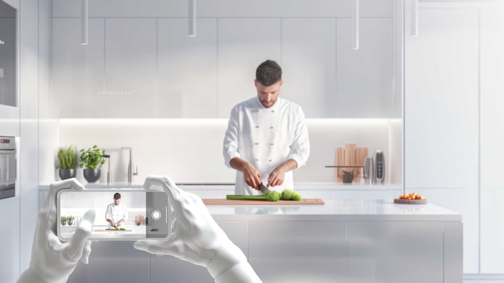 Recording: Users use their smartphones, GoPro, or other cameras to capture videos of themselves performing detailed tasks, such as preparing food, cleaning, assembling objects, or other hand-manipulation actions.